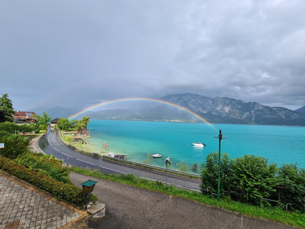 Der traumhafte Blick vom Balkon über den Attersee lässt Sie durchatmen und den Alltag vergessen.